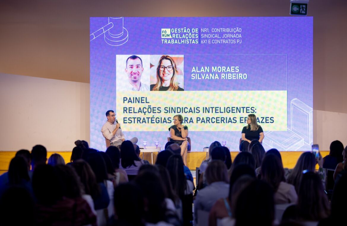 O painel de encerramento abordou estratégias para relações sindicais eficazes, com a participação do gerente de gente e gestão da CEEE Grupo Equatorial, Alan Moraes, e da head de RH do Grupo Digicom, Silvana Ribeiro. Moraes enfatizou a importância do diálogo e da construção de uma agenda positiva com os sindicatos. Ribeiro complementou afirmando que “é essencial ter um olhar de maturidade e respeito em relação aos sindicatos”.