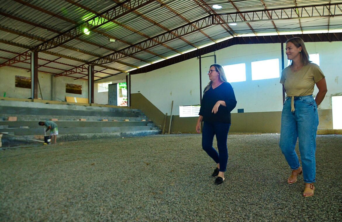 As estruturas foram impactadas com a retirada dos materiais deteriorados e adaptação para receber as benfeitorias. A cancha de jogos, por exemplo, além da retirada do piso velho, está recebendo uma nova base. Durante a passagem pelas reformas a prefeita relembrou de grandes jogos que aconteciam no ginásio. “Depois da revitalização a comunidade terá novamente à disposição esse lugar que já foi palco de grandes disputas e de integração e lazer das pessoas”, destaca Ester. A empresa que está executando a obra tem quatro meses para terminá-la, conforme prevê o contrato. O Município está investindo R$ 651.869,89