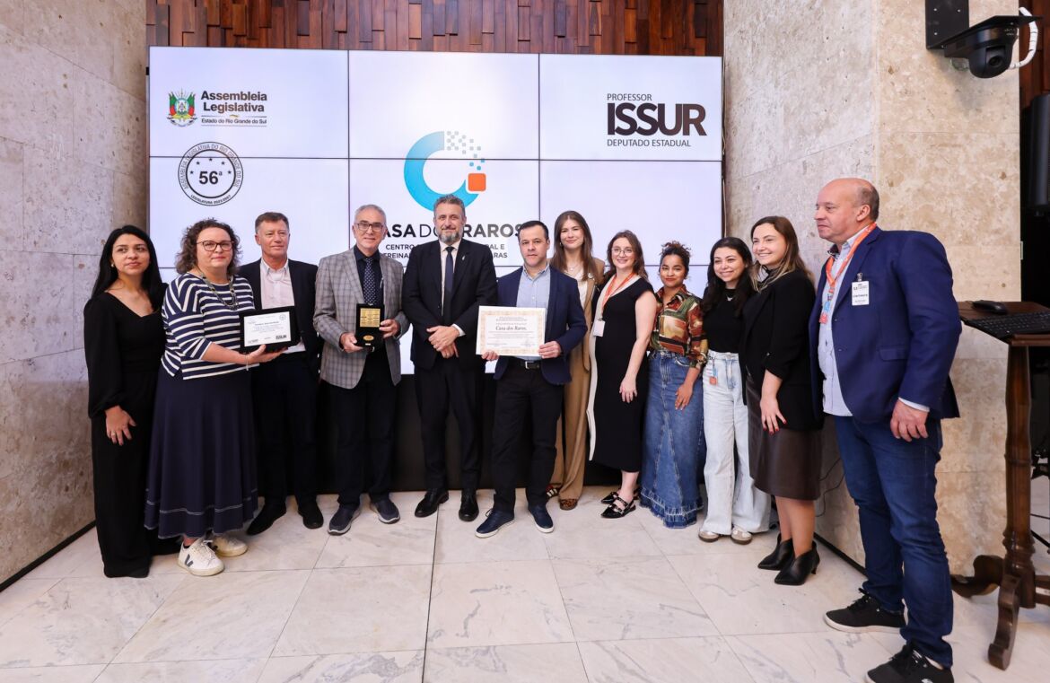 A Casa dos Raros, de Porto Alegre, recebeu a Medalha da 56ª Legislatura da Assembleia Legislativa do Rio Grande do Sul (ALRS) nesta quarta-feira (17). A homenagem, proposta pelo deputado estadual Prof. Issur Koch (PP), ocorreu durante a cerimônia que também marcou a instalação da Frente Parlamentar em Defesa das Pessoas com Doenças Raras, que surge com o objetivo de ampliar a visibilidade e a articulação política sobre o tema.