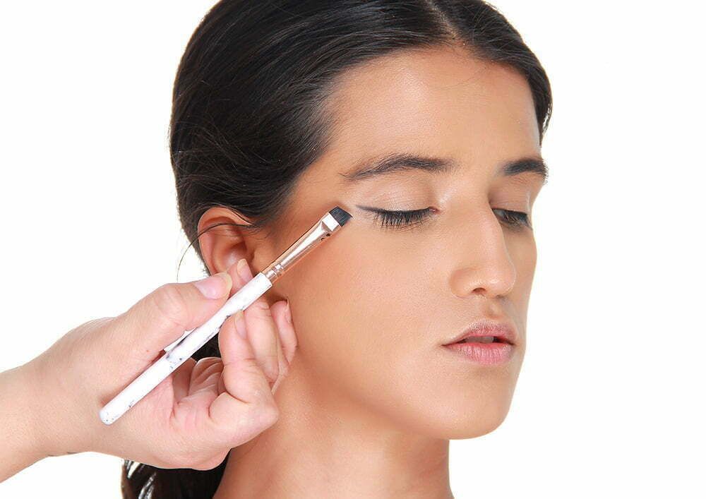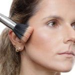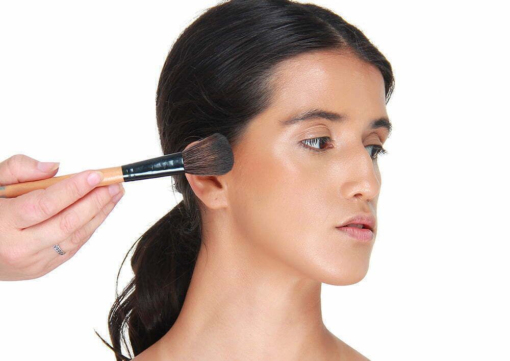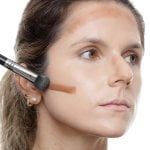 Para o contorno, use um corretivo em um tom mais escuro que sua pele. Aplique. Esfume delicadamente até que a linha marcada suma e dê lugar a um sombreado natural. Aplique o blush na maçã do rosto. Dê preferência a um tom de rosa queimado. Utilize um iluminador nas têmporas que fique de forma mais natural;