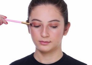 Para realçar os olhos, aplique a sombra preta no canto externo dos olhos, esfumando bem, até que a delimitação entre o preto e o roxo fique “quase” impercetível. Faça o mesmo na parte de baixo dos olhos.