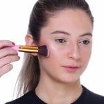 Para o contorno, use um corretivo em um tom mais escuro que sua pele. Aplique. Esfume delicadamente até que a linha marcada suma e dê lugar a um sombreado natural. Aplique o blush na maçã do rosto. Dê preferência a um tom de rosa queimado. Utilize um iluminador nas têmporas que fique de forma mais natural;