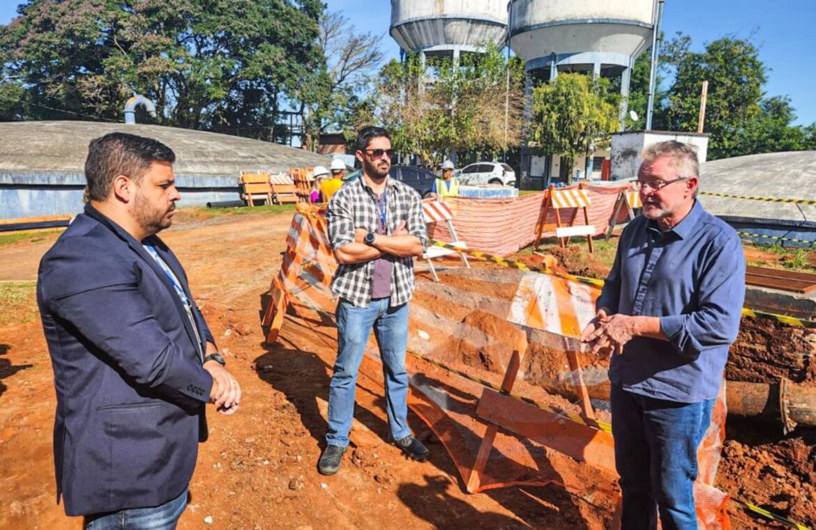 Com investimento de R$ 1 milhão de recursos próprios do Semae, uma nova adutora está sendo construída no bairro Morro do Espelho, com o objetivo de melhorar em até quatro vezes o abastecimento e a pressão da água dos bairros Fião e parte baixa do Cristo Rei. Na segunda-feira (15), o prefeito de São Leopoldo, Ary Vanazzi e o diretor-geral do Semae, Geison Freitas, vistoriaram as obras que já estão ocorrendo no reservatório do Morro do Espelho.