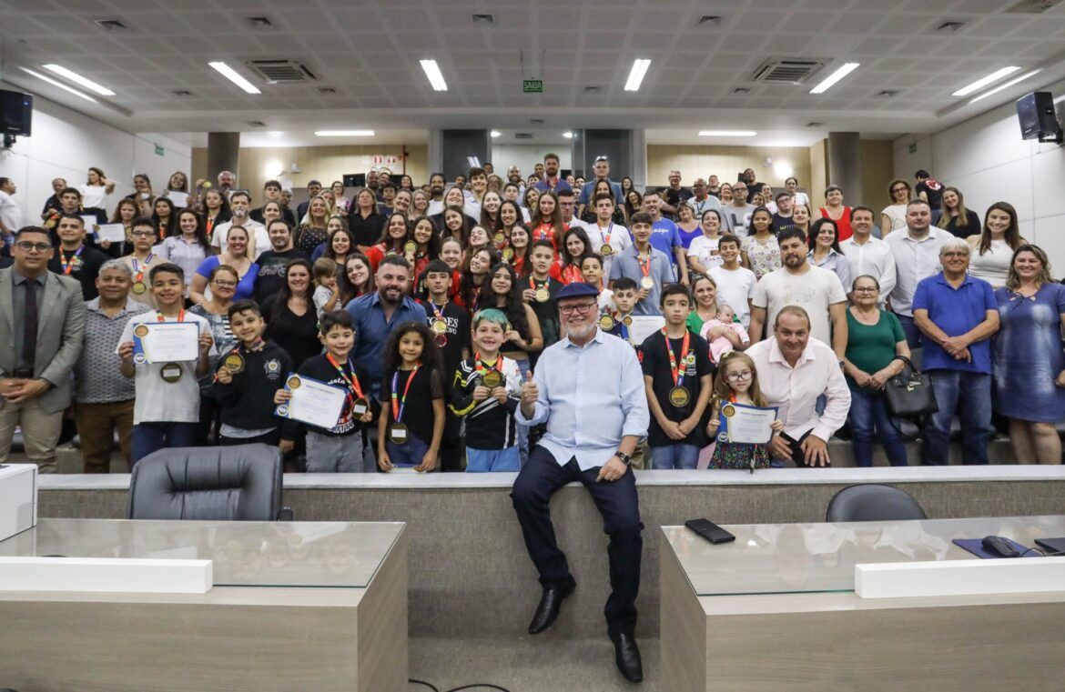 Criada há mais de 20 anos, a Medalha Mérito Esportivo chega à edição de 2023 com um número recorde de homenageados: 135 atletas de Novo Hamburgo ou inscritos em agremiações esportivas da cidade. No ano passado, o número tinha ultrapassado 120 esportistas. A entrega da distinção ocorreu na noite de quinta-feira, 30, com um Plenário lotado.