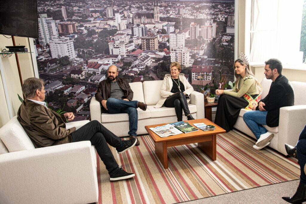 Uma cesta com produtos de Picada Café, uma sacola com malha e um convite foram os ingredientes do encontro da comitiva da I Tricofest de Picada Café com o governador Ranolfo Vieira Jr na tarde dessa segunda-feira, 11 de julho, no Palácio Piratini em Porto Alegre. O encontro serviu para convidar a autoridade máxima do estado para a abertura oficial da Tricofest em Picada Café.