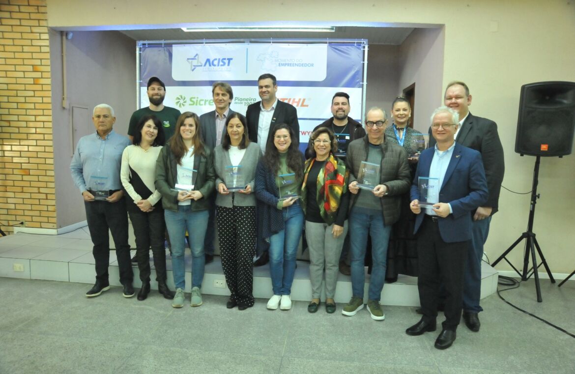 Uma placa comemorativa foi entregue para sete empresas que fazem aniversário de fundação em anos múltiplos de cinco durante o Momento do Empreendedor da Acist-SL, realizado nesta quinta-feira (18). A atividade é de parabenização às associadas é tradicional no evento da entidade. A homenagem foi concedida pelo presidente da Acist-SL, Daniel Klafke.
