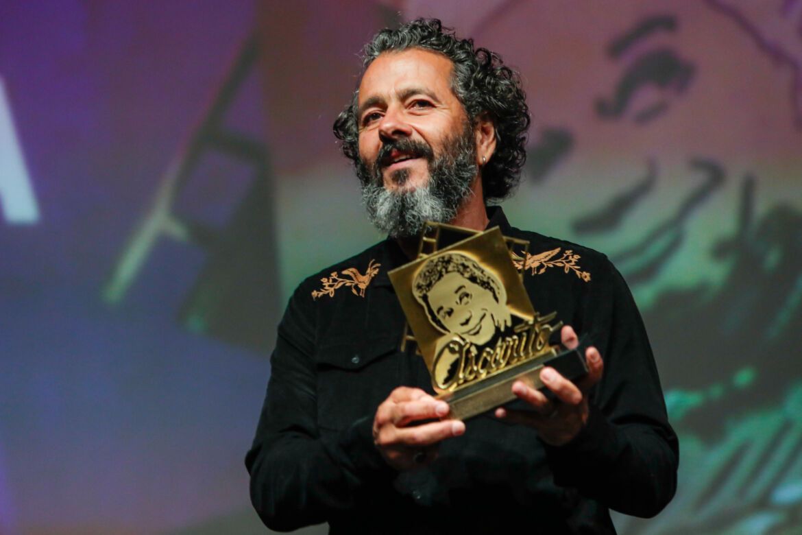 A popularidade do personagem Zé Leôncio da novela Pantanal selou a consagração de Marcos Palmeira no Festival de Cinema de Gramado. Ovacionado pelo público em sua caminhada pelo tapete vermelho e depois, mais uma vez, dentro do Palácio dos Festivais, o ator recebeu na noite deste sábado (13) o troféu Oscarito. Aplaudido de pé, o homenageado recebeu o troféu das mãos da presidente da Gramadotur Rosa Helena Volk e frisou a importância da cultura, do turismo e do meio ambiente para transformações sociais. Ativista ambiental, Palmeira lembrou que foi na sua imersão em meio a índios isolados no Pará que sua vocação para a interpretação ficou mais evidente ao contar histórias do “homem branco” para a comunidade.