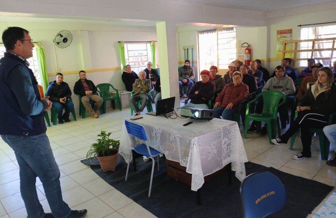 Agricultores das localidades de Morro Calçado e Linha São Paulo, em Canela, participaram nos dias 30 e 31 de julho de reuniões promovidas pela Prefeitura para conhecer o funcionamento do programa estadual Operação Terra Forte, voltado à recuperação de unidades de produção familiar. Os encontros foram organizados pelo Departamento de Agricultura da Secretaria de Obras do município, com apoio da Emater.