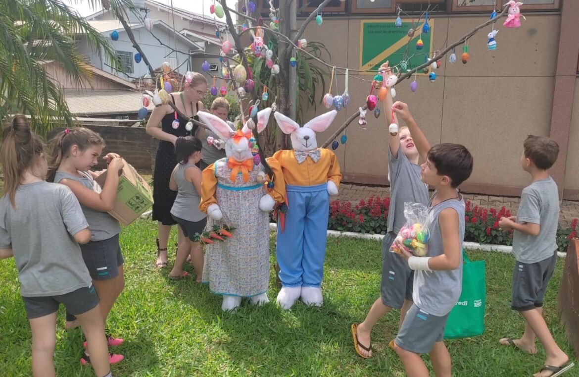 Já para entrar no clima da Osterfest os alunos da educação infantil e do ensino fundamental estiveram essa semana junto ao prédio da Prefeitura Municipal. O objetivo: pendurar as casquinhas de ovos pintadas com a ajuda dos pais ou mesmo nas escolas na árvore de Páscoa, contribuindo assim com a decoração da cidade. Confira a programação no site da prefeitura.