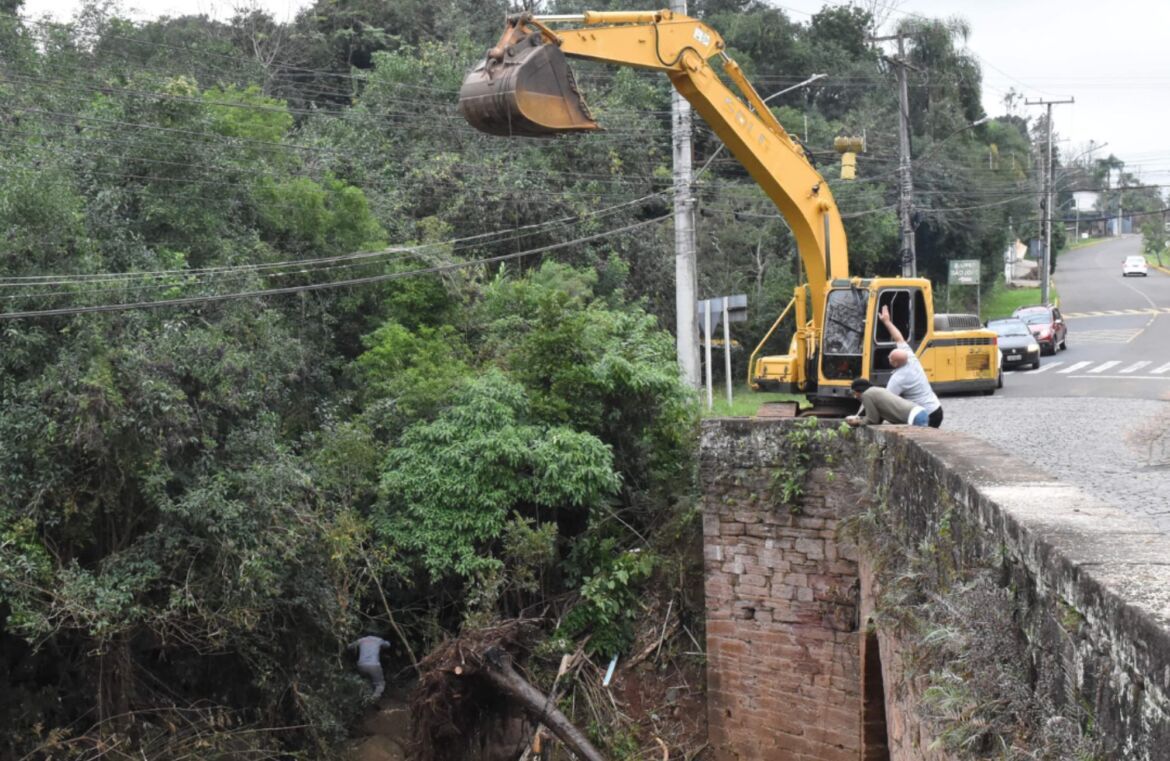 A Secretaria de Infraestrutura e Serviços Públicos de Dois Irmãos, nesta segunda-feira (10), iniciou operação de limpeza na Ponte de Pedra sobre o Arroio Feitoria, que liga a Avenida São Miguel com a Rua Alberto Rübenich.