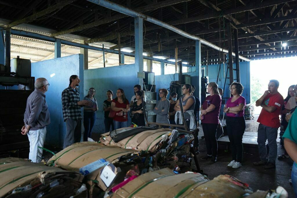 Com o propósito de desenvolver a Educação Ambiental e colaborar para a criação de um mundo mais sustentável, professores de Educação Infantil e de Ensino Fundamental da rede municipal de ensino de Campo Bom se reuniram na terça-feira, dia 19. O encontro começou no Centro de Educação Ambiental Nestor Weiler (Cemea) e culminou com a visita técnica na Usina de Reciclagem de Campo Bom, para que os educadores pudessem ver de perto como chegam os resíduos produzidos nos lares campo-bonenses e como eles são separados e encaminhados para a reciclagem pela equipe da cooperativa Coolabore.