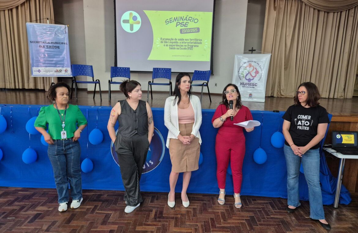 As secretarias municipais de Saúde (Semsad) e Educação (Smed) de São Leopoldo realizaram o seminário “A promoção de saúde nos territórios de São Leopoldo: a intersetorialidade e as experiências no Programa Saúde na Escola (PSE)” na manhã desta quinta-feira (23), no auditório do Colégio São Luiz. O evento marcou o mês de integração entre as duas pastas, que desenvolvem ao longo do ano ações conjuntas nas escolas públicas do município por meio do PSE, com o objetivo de promover práticas saudáveis e fortalecer o vínculo entre educação e saúde nos territórios.