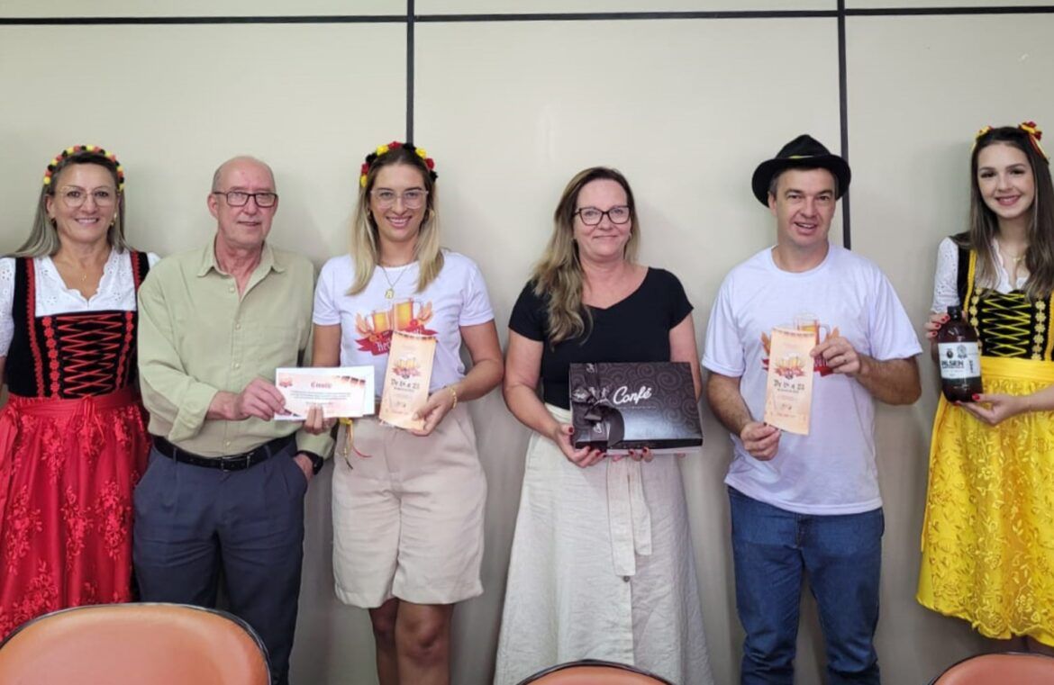 O prefeito de Ivoti Martin Cesar Kalkmann, a secretária de Turismo, Cultura e Desporto, Raiama Trenkel, o casal adulto Laercio Mess e Luciane Rauber e o casal jovem Jackson Riffel e Bruna da Silva, estiveram no Paço Municipal de São José do Hortêncio nesta quinta-feira, (11). Trouxeram consigo um convite para a prefeita Ester Elisa Dill Koch e vice-prefeito José Maurício Heck. Acontece de 18 a 23 de janeiro a vigésima-nona edição do Kerb in Ivoti. Essa é uma grande festa cultural em que as raízes germânicas são levadas para a Praça Concórdia. Toda a programação tem ingresso gratuito. Todas as atrações estão disponíveis nas redes sociais da Prefeitura de Ivoti.