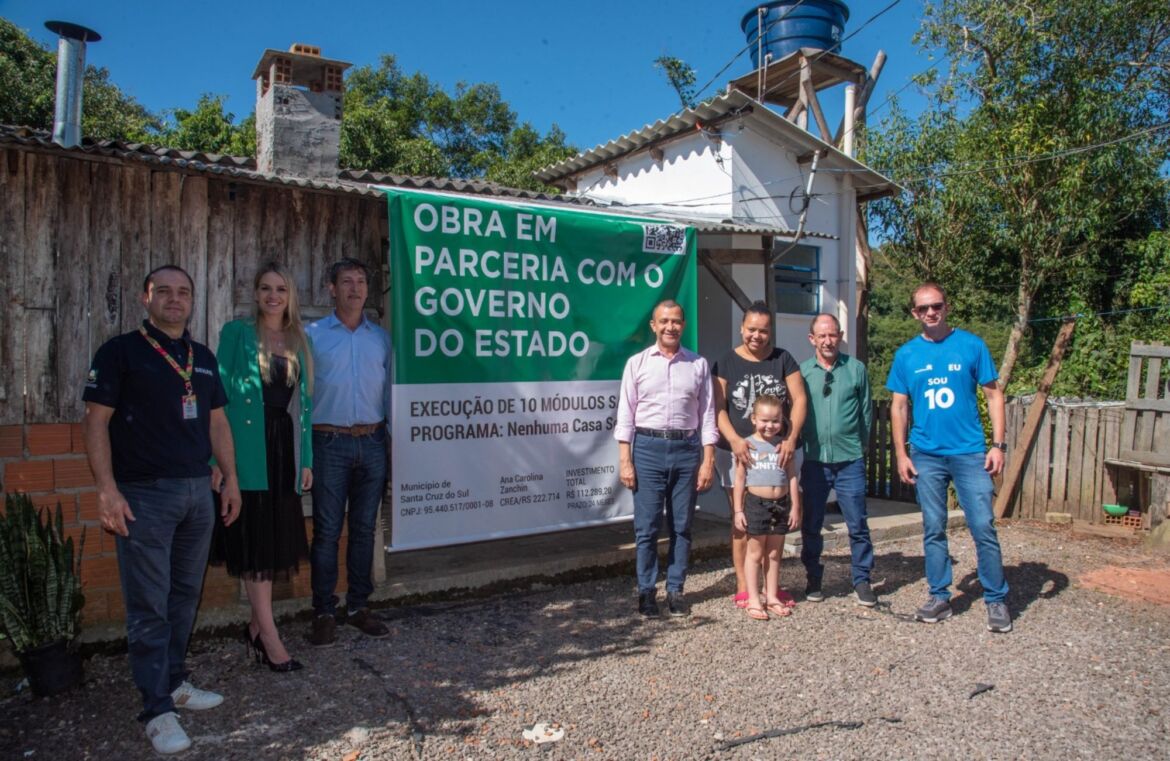 O Bairro Belvedere, em Santa Cruz do Sul, recebeu o secretário estadual de Habitação e Regularização Fundiária, Carlos Gomes, na tarde de sábado (20). Gomes esteve no município para conferir os resultados do Programa Nenhuma Casa sem Banheiro. A visita foi na residência de Sabrine Josiele Porto, contemplada com um dos dez módulos sanitários construídos na cidade por meio de parceria entre a Prefeitura e o Governo do Estado.