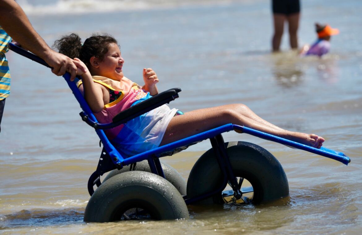O banho de mar acessível, realizado com cadeiras anfíbias adaptadas para transitar na areia e flutuar na água, atendeu 33 pessoas nas cinco praias durante o sábado.