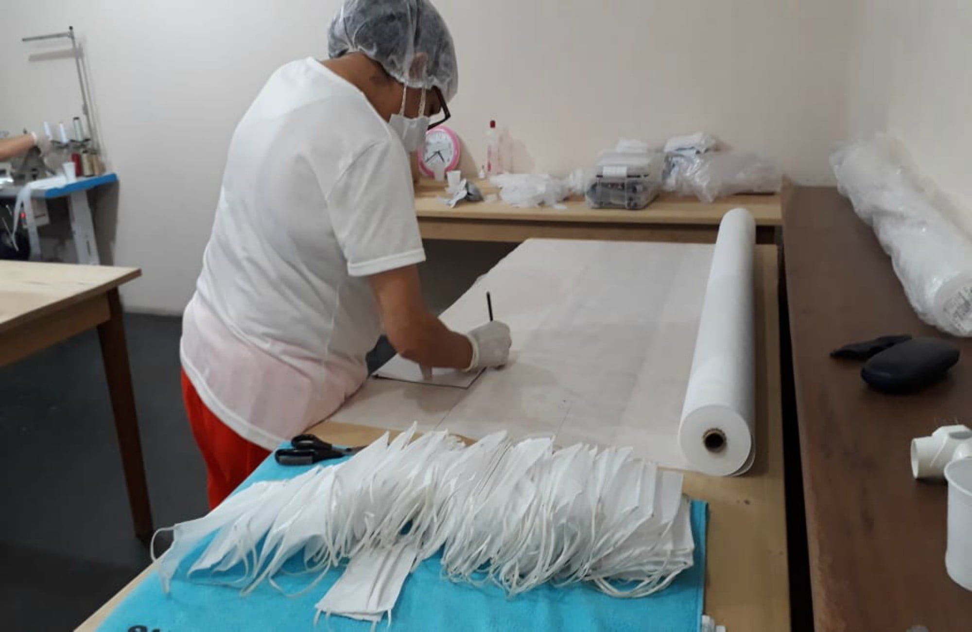 Cerca de 200 presos de várias regiões do estado, de penitenciárias masculinas e femininas, vão confeccionar os materiais descartáveis para uso em procedimentos simples não-cirúrgicos. E a estimativa é de que produzam 87 mil peças até o fim de abril.
