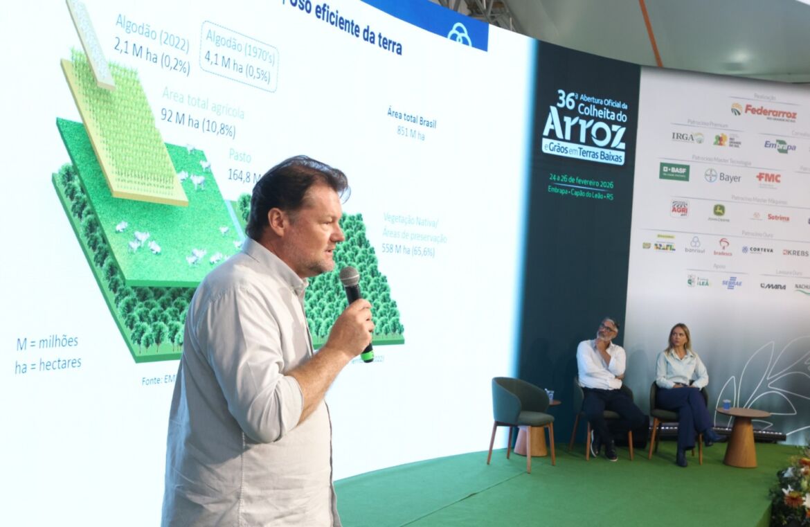 A 36ª Abertura Oficial da Colheita do Arroz e Grãos em Terras Baixas reuniu produtores e especialistas no painel “Produtores em Foco: Experiências que Geram Valor” nesta terça-feira (24), no Auditório Frederico Costa, em Capão do Leão. O encontro apresentou casos práticos de transformação no campo com foco em qualidade de semente, inovação, gestão e eficiência produtiva para ampliar escala e sustentar margens no agronegócio.