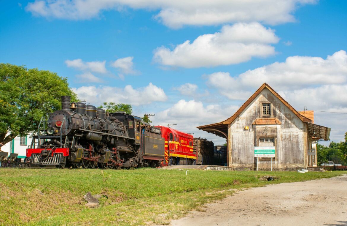 No coração do RS, um passeio de trem pela história ferroviária do Estado. Depois de 27 anos sem passeios regulares, a linha férrea Porto Alegre – Uruguaiana, aberta em 1883, voltou a receber um trem de passageiros no último sábado, 24 de junho. O marco foi possível graças ao início da primeira edição do Trem da Quarta Colônia, que realiza passeios turísticos nos dias 24 e 25 de junho e 01 e 02 de julho entre Santa Maria e Restinga Sêca.