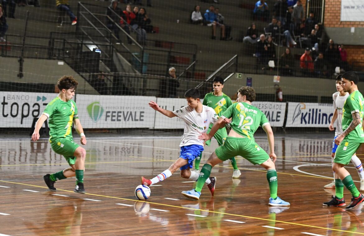A equipe sub-15 da UJR entra em quadra neste domingo, 12 de outubro, às 18h, no Ginásio Municipal Agostinho Cavasotto, em Novo Hamburgo, para enfrentar a AADE, de Carlos Barbosa, pelo jogo de ida da semifinal da Conferência Leste do Gauchão de Futsal. A partida marca o início da disputa por uma vaga na decisão da competição estadual. O confronto de volta será no dia 25 deste mês, na serra gaúcha.