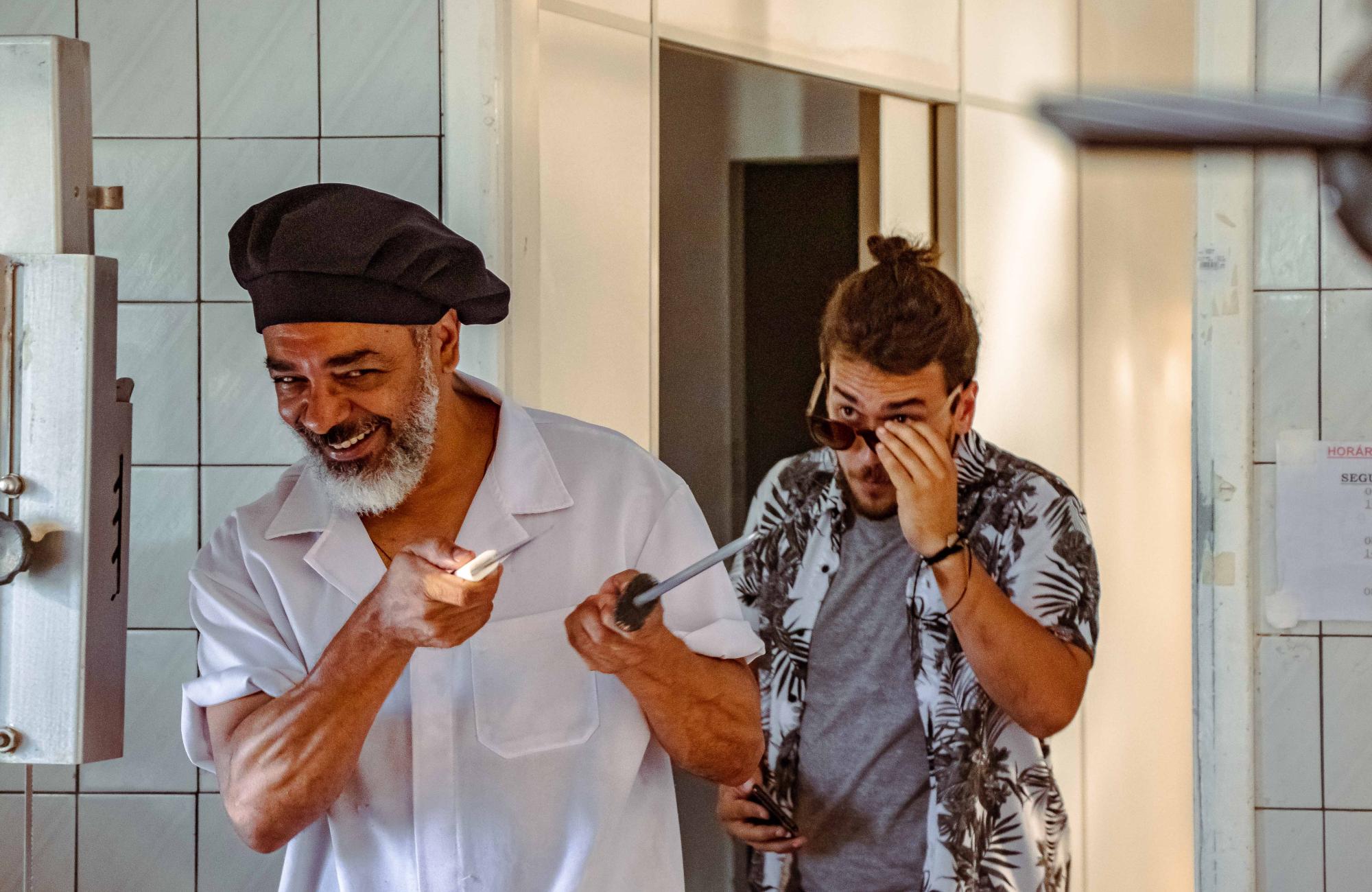 As vendas de carne em um pequeno açougue estão em crise, as pessoas compram pouco e o açougueiro é posto sob pressão para alavancar as vendas do estabelecimento.