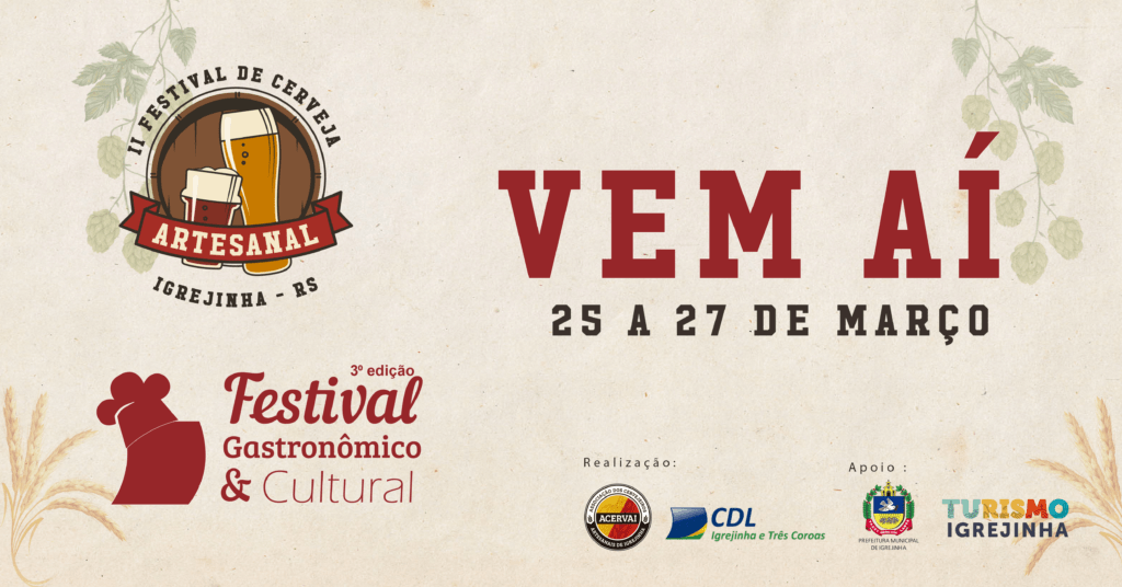 Depois de precisar ser adiado devido a pandemia, o 2º Festival de Cerveja Artesanal e 3º Festival Gastronômico e Cultural de Igrejinha volta a ser realizado. Nos dias 25, 26 e 27 de março, as cervejas artesanais, a gastronomia personalizada e atrações musicais vão movimentar o Parque de Eventos Almiro Grings (Parque da Oktoberfest de Igrejinha).