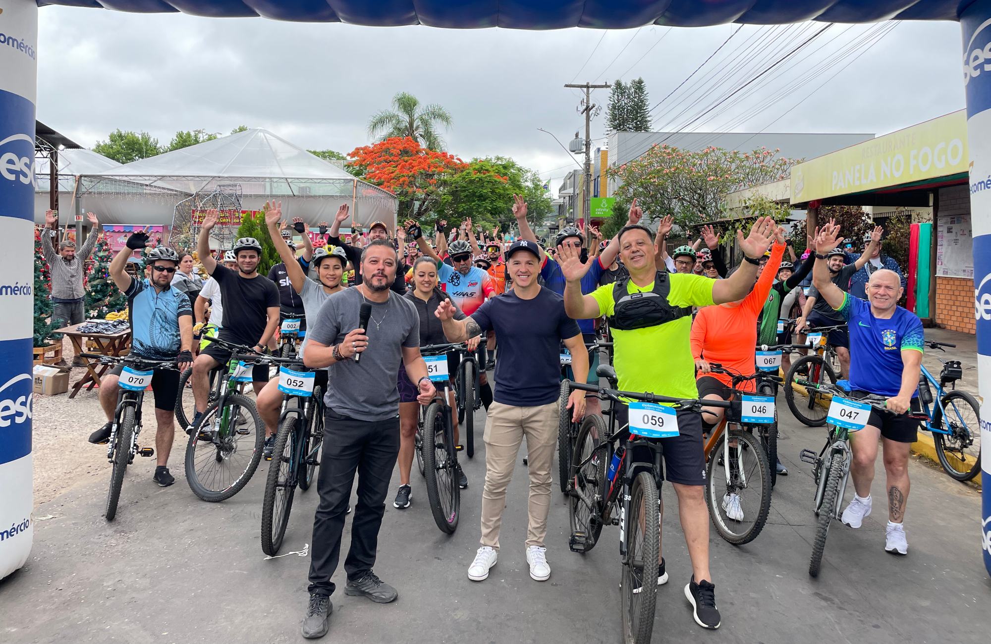 Estância Velha realizou a quinta edição do Cicloturismo neste domingo (30), reunindo cerca de 150 ciclistas da cidade e da região em um percurso pela zona rural. Com trajetos de 22 e 16 quilômetros, a ação foi organizada pela Prefeitura por meio da Secretaria de Segurança, Esporte e Bem-Estar (Sesebe) e da Coordenadoria Municipal de Desporto (CMD).