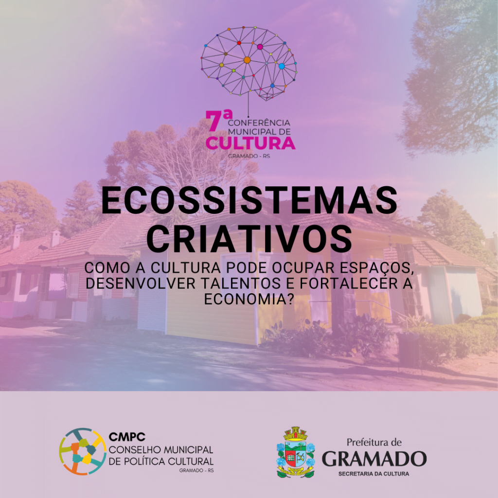 Com a temática “Ecossistemas Criativos: como a cultura pode ocupar espaços, desenvolver talentos e potencializar a economia”, acontece, nos dias 14 e 16 de outubro a 7ª Conferência de Cultura de Gramado. O evento, que será dividido entre Fóruns Setoriais, no dia 14, a partir das 17h30, e Conferência, no dia 16, das 8h30 às 19h, será realizado no Teatro Elizabeth Rosenfeld, sede da Câmara de Vereadores.