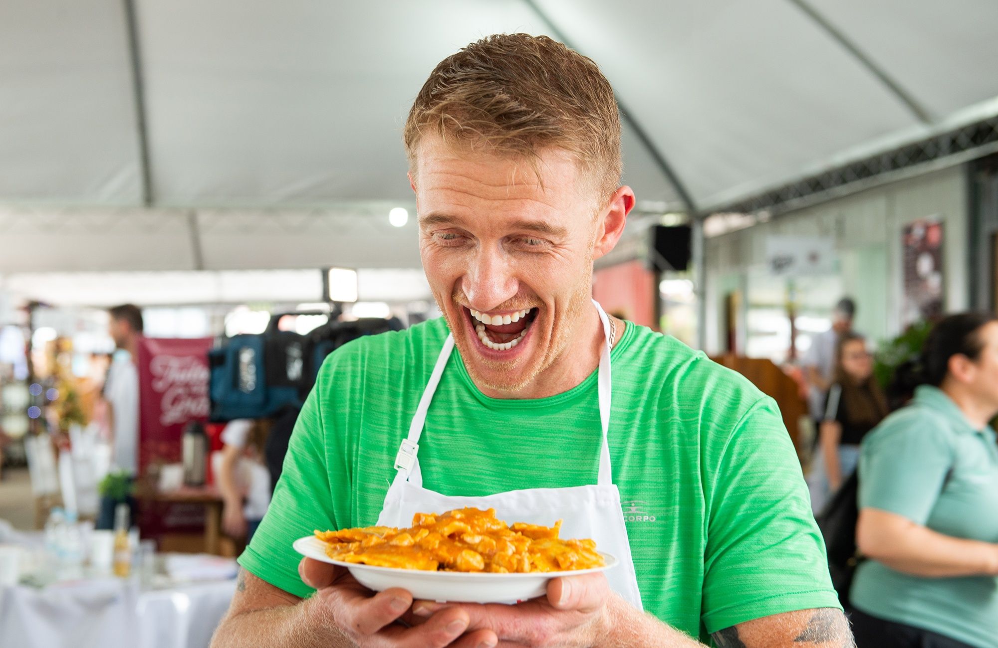 Após comer 95 unidades de tortéi, Neimar Zamboni, 41 anos, se tornou bicampeão do concurso do Maior Comedor de Tortéi do 7º Festival Nacional da Massa – Fenamassa. A competição foi realizada neste sábado (12), junto ao Espaço Sorvelândia na Praça de Alimentação e teve quase duas horas e meia de duração, sendo acompanhada por um público atento.