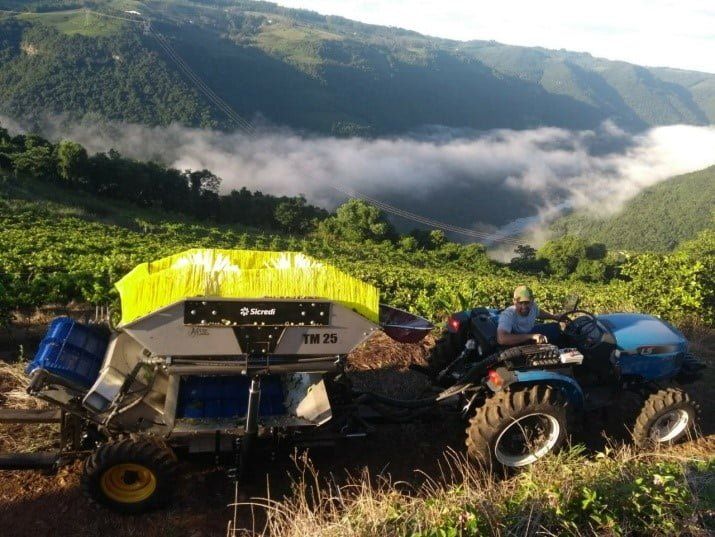 Invento: Colhedora de uva rebocada (colhedora tracionada por trator para o sistema de condução da videira do tipo Latada).