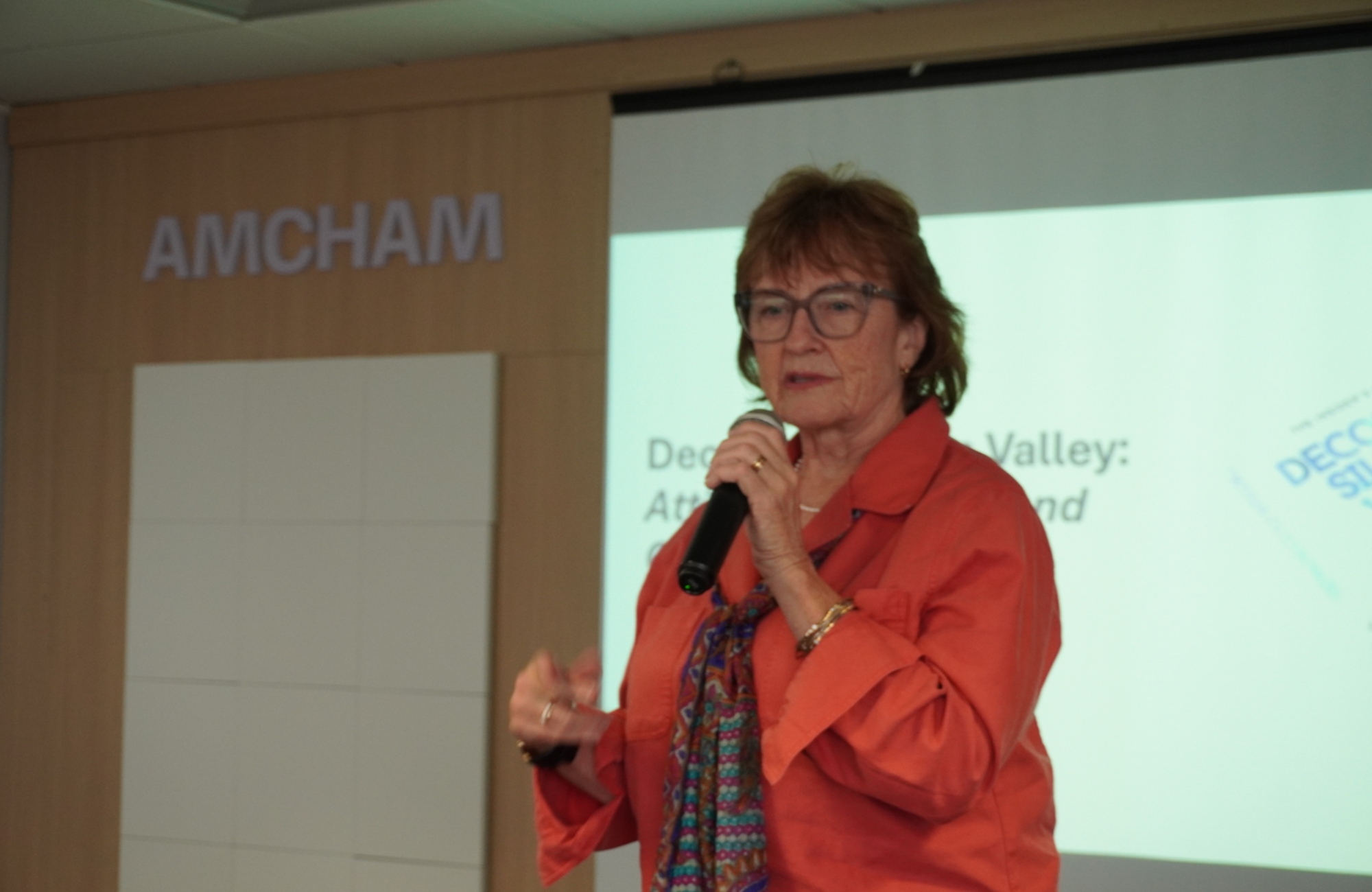Michelle Lane Messina, CEO da Explora International LLC e coautora do livro Decoding Silicon Valley, conduziu nesta quinta-feira (26) uma palestra exclusiva para participantes da missão Amcham Lab On Tour, em Porto Alegre. O encontro, realizado na sede da Câmara Americana de Comércio no Rio Grande do Sul (Amcham RS), reuniu executivos de diferentes estados brasileiros para uma imersão nos princípios que tornam o Vale do Silício o ecossistema de inovação mais influente do mundo e no papel da inteligência artificial na liderança corporativa. “A competição não ocorre entre humanos e a tecnologia, mas sim entre profissionais que utilizam a IA de forma eficiente e aqueles que não a dominam. A IA não vai substituir a humanidade. Líderes que a dominam é que substituirão aqueles que não a dominam”, afirmou Messina. A missão, realizada pela Amcham RS em parceria com a Icatu, integra a programação da entidade durante o South Summit Brazil 2026, que ocorre até sexta-feira (27) no Cais Mauá.
