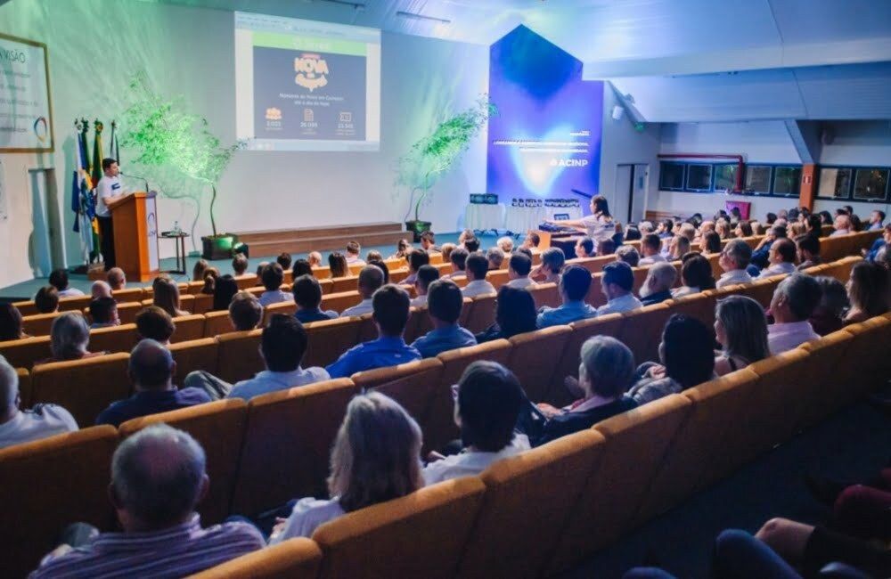 Na sequência, foi apresentado aos associados presentes o propósito da Acinp, definido em imersão estratégica com Diretoria, Colaboradores e Diretores de Departamentos Setoriais. “Lideramos o desenvolvimento dos negócios, transformando a comunidade” é o que a entidade se propõe. Este foi um momento especial, em que todos os envolvidos subiram ao palco vestindo a camiseta do propósito, que vai embasar as ações futuras da entidade.