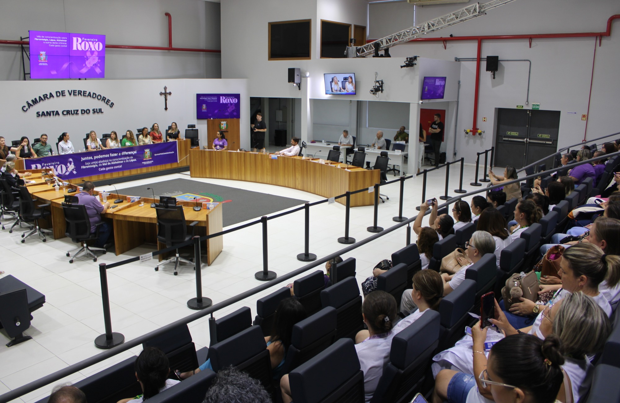 Uma audiência pública realizada na Câmara de Vereadores de Santa Cruz do Sul, na noite desta quinta-feira (27), reuniu especialistas, profissionais de saúde, autoridades e a comunidade para discutir políticas públicas e conscientização sobre doenças crônicas e neurológicas, como fibromialgia, lúpus e Alzheimer, dentro do movimento Fevereiro Roxo. Cerca de 100 pessoas participaram do encontro, incluindo uma comitiva de Cachoeira do Sul.