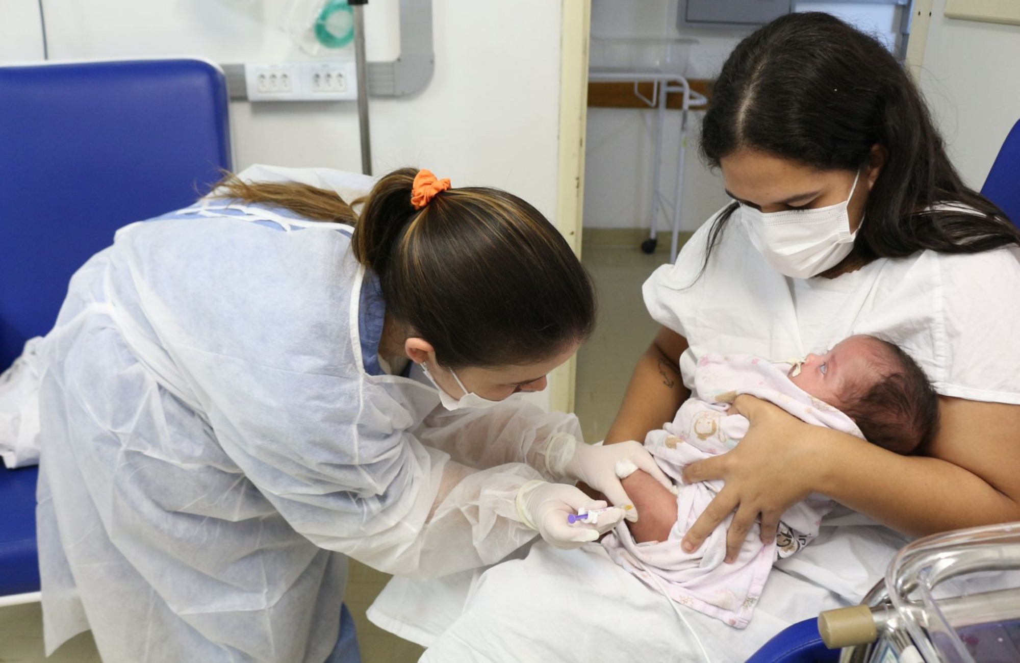 Os bebês Giovanna, nascida com 28 semanas, e Vicente, com 30 semanas, foram os primeiros a receber o imunizante no GHC. A aplicação ocorreu na Unidade de Cuidados Intermediários Neonatal do HCC, onde ambos estavam internados junto às mães.