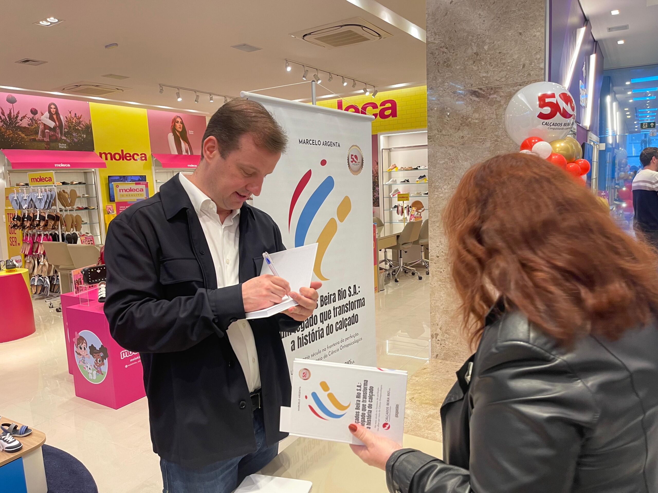 A cerimônia também marcou o desvelamento de uma placa comemorativa dos 50 anos, instalada no showroom da empresa, o momento marcante foi realizado pelo presidente ao lado de seus filhos — Rodrigo Argenta, vice-presidente; Vinicius Argenta, diretor de operações; e Marcelo Argenta, conselheiro consultivo de relações humanas. Na ocasião também realizado o lançamento do livro Calçados Beira Rio S.A.: um legado que transforma a história do calçado, escrito por Marcelo Argenta. A obra resgata a história da companhia e apresenta os fundamentos do programa Conquistando a Perfeição, idealizado por Roberto Argenta, que tem como base a valorização humana, a formação contínua e o trabalho como caminho para a dignidade.