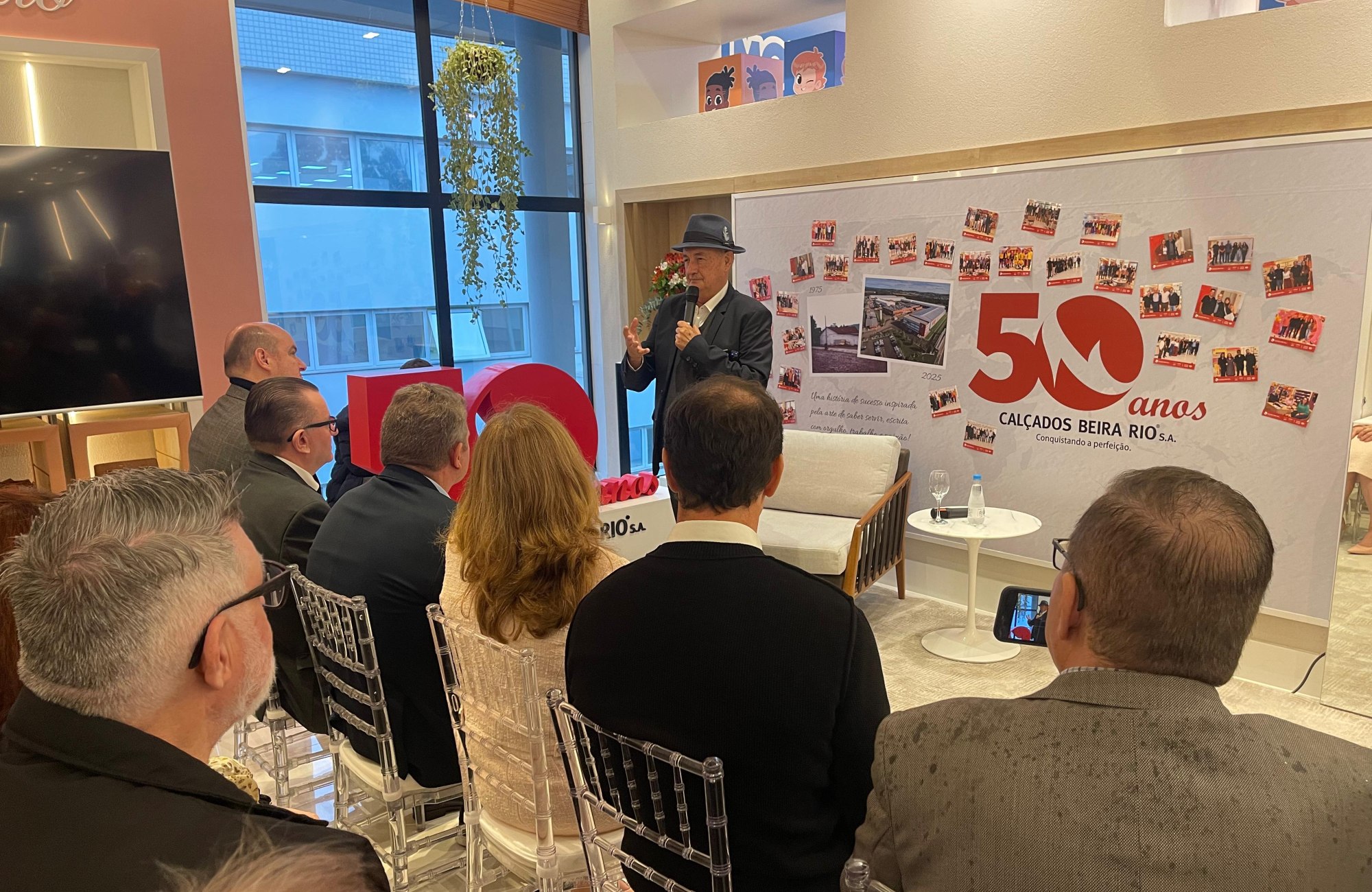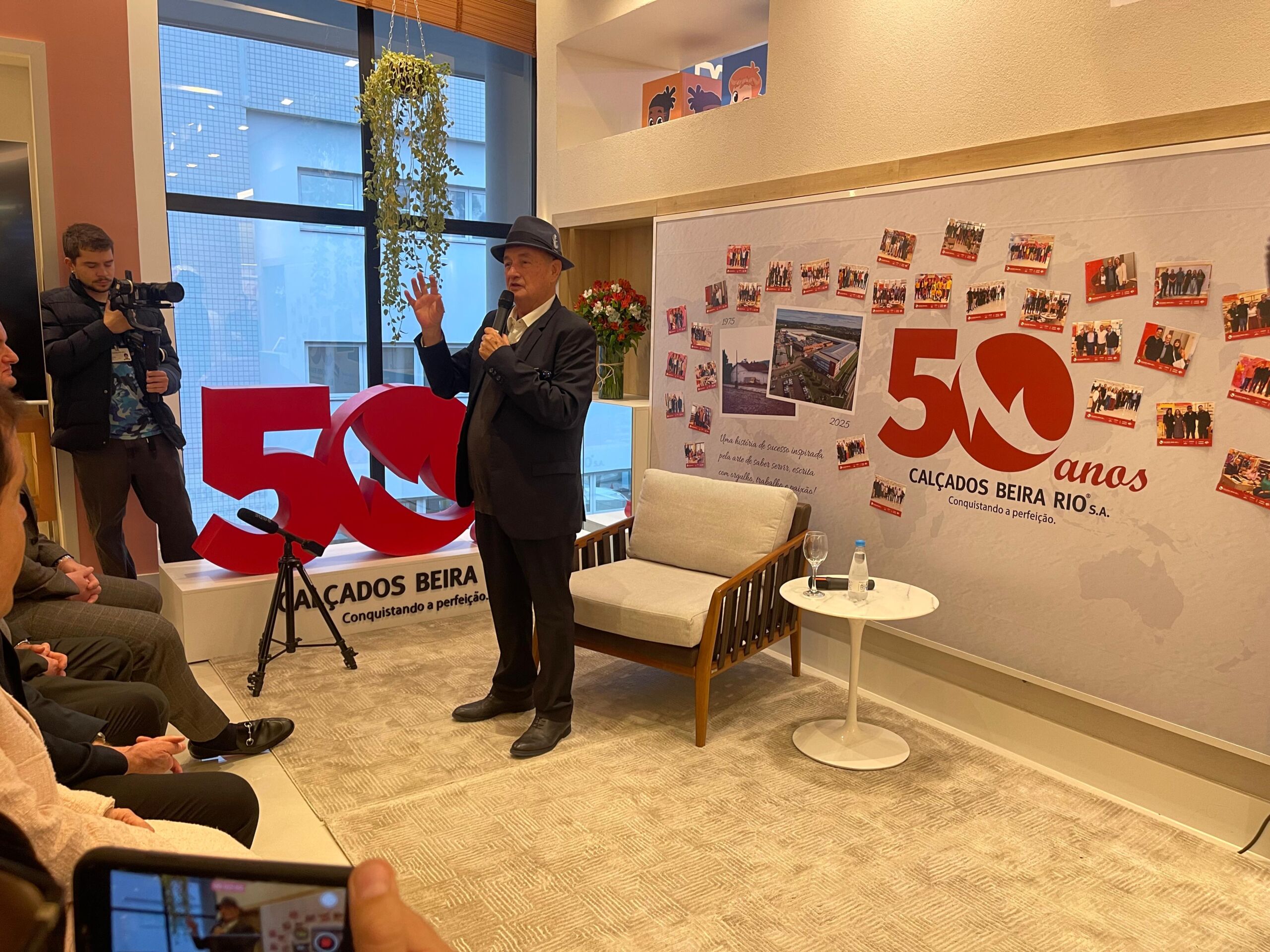 Na manhã desta terça-feira, 17, a sede da Calçados Beira Rio S.A., em Novo Hamburgo, foi palco de uma celebração marcada pela emoção, memória e compromisso com o futuro. Em coletiva de imprensa que reuniu diretores, acionistas, clientes, colaboradores e representantes da imprensa, a empresa comemorou seus 50 anos de trajetória com um café especial seguido de um bate-papo com o presidente Roberto Argenta.