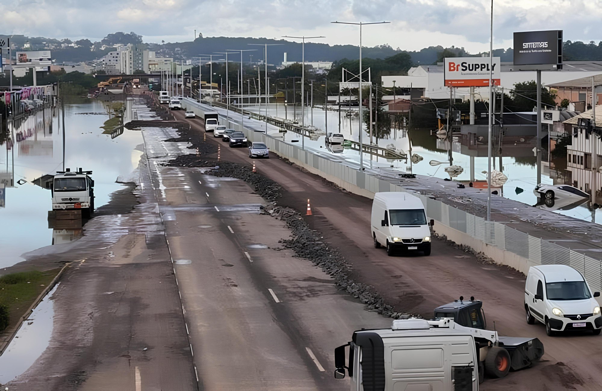 Está bloqueado o trânsito para veículos de passeio nos dois sentidos da BR-116 entre os km 244 e 250, em São Leopoldo. A medida foi tomada pelo Departamento Nacional de Infraestrutura de Transportes (DNIT) na manhã desta quarta-feira (15) em função das obras emergenciais no aterro junto à ponte do Rio dos Sinos.