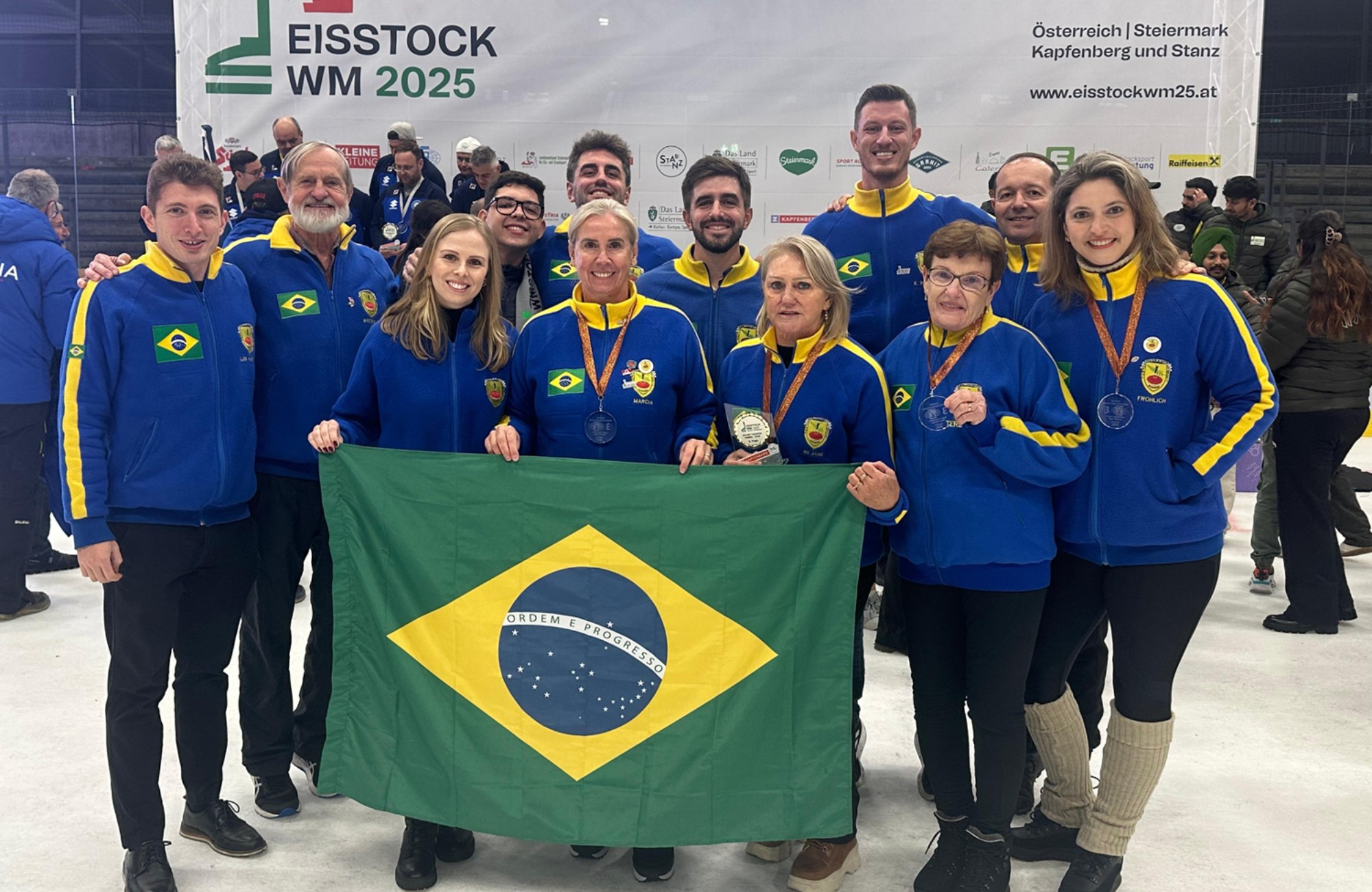 Com a conquista de uma medalha inédita, a Seleção Brasileira de Eisstocksport encerrou neste domingo (3) sua participação no Campeonato Mundial da modalidade, realizado em Kapfenberg, na Áustria. A equipe feminina do Brasil, composta por Terezinha Horn, do Centro de Cultura Alemã, de Lajeado; Rejane Böhm e Márcia Reis, do Centro Cultural 25 de Julho; e Flávia Fröhlich, do Alt Pikade, ambos de Santa Cruz do Sul, obteve o bronze ao terminar no terceiro lugar a disputa por equipes.