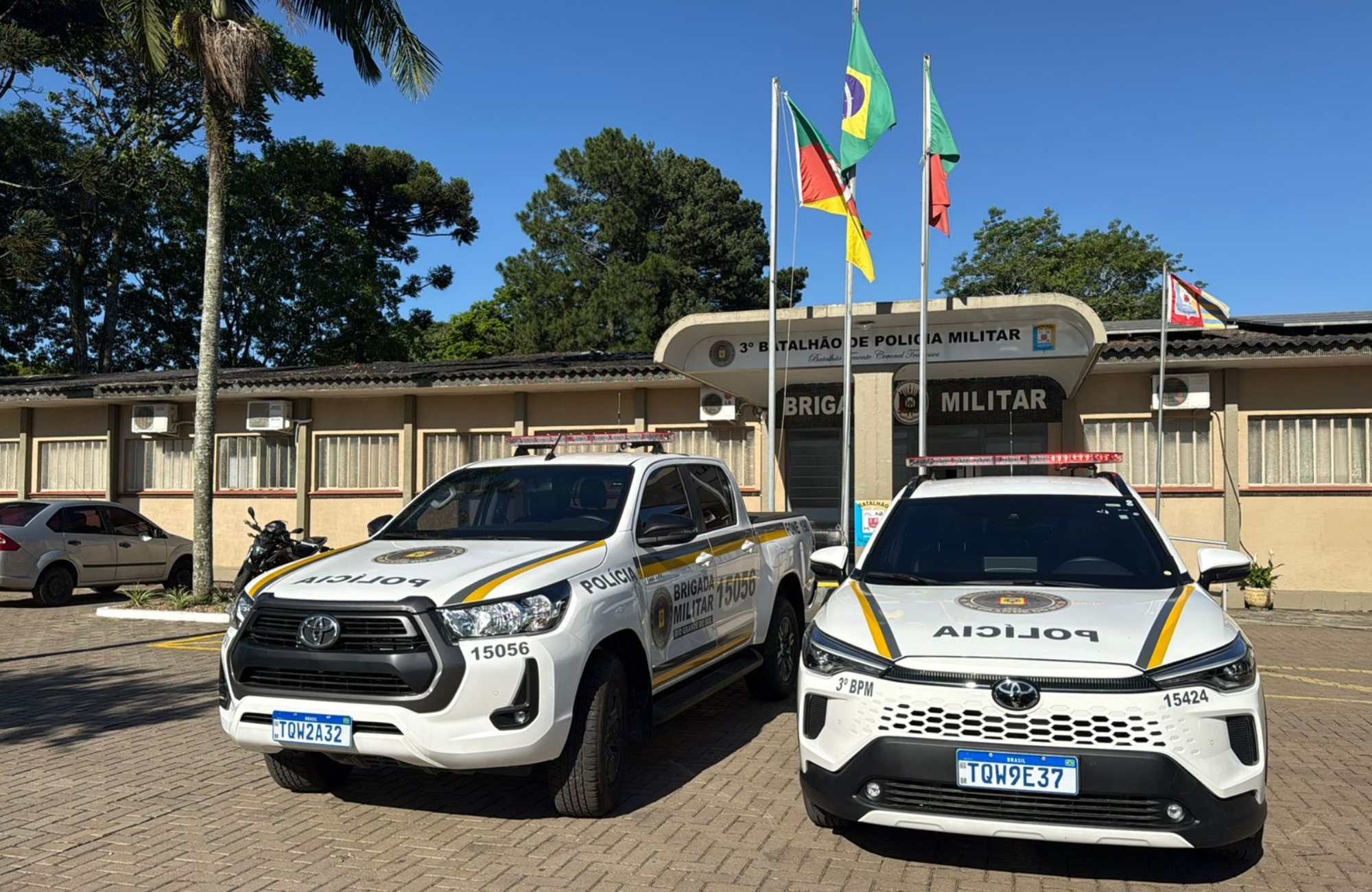 O 3º BPM de Novo Hamburgo recebeu duas novas viaturas — uma Hilux e um Corolla Cross — nesta terça-feira (18), no aniversário de 188 anos da Brigada Militar. Com a chegada dos dois veículos, o batalhão passa a contabilizar sete novas viaturas entregues neste ano. De acordo com a corporação, o reforço contribui para aumentar a presença policial nas ruas e aprimorar a resposta às ocorrências registradas no município.
