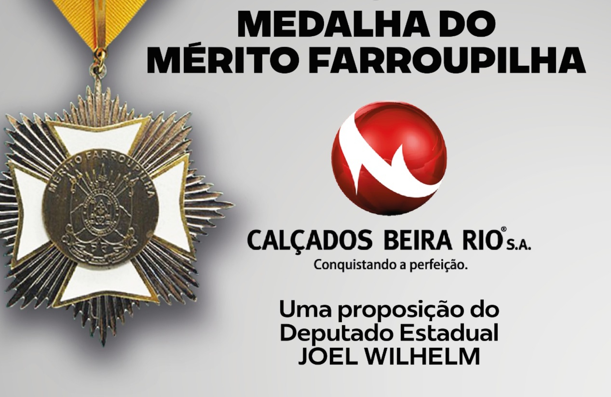 No próximo dia 26 de agosto, às 12h30, a Calçados Beira Rio S.A. receberá a Medalha Mérito Farroupilha, a mais alta honraria concedida pelo Parlamento gaúcho. A distinção será entregue durante cerimônia no Salão Júlio de Castilhos, localizado no primeiro andar da Assembleia Legislativa do Rio Grande do Sul, em Porto Alegre.