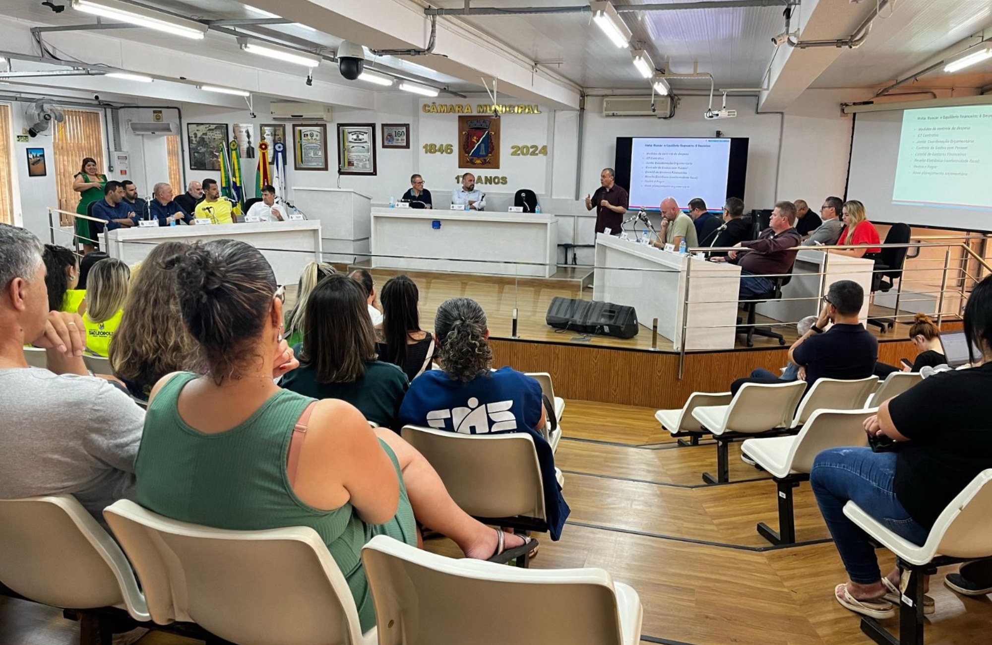 A Câmara de Vereadores de São Leopoldo realizou nesta quarta-feira (19) uma audiência pública para apresentar e discutir o Plano de Equilíbrio Financeiro do município. O encontro foi conduzido pelo vereador e líder do governo, Daniel Daudt (PL), e pelo secretário da Fazenda, Roberto Calazans, que detalharam os dados financeiros e as medidas adotadas pela gestão municipal para enfrentar o desequilíbrio econômico da cidade.