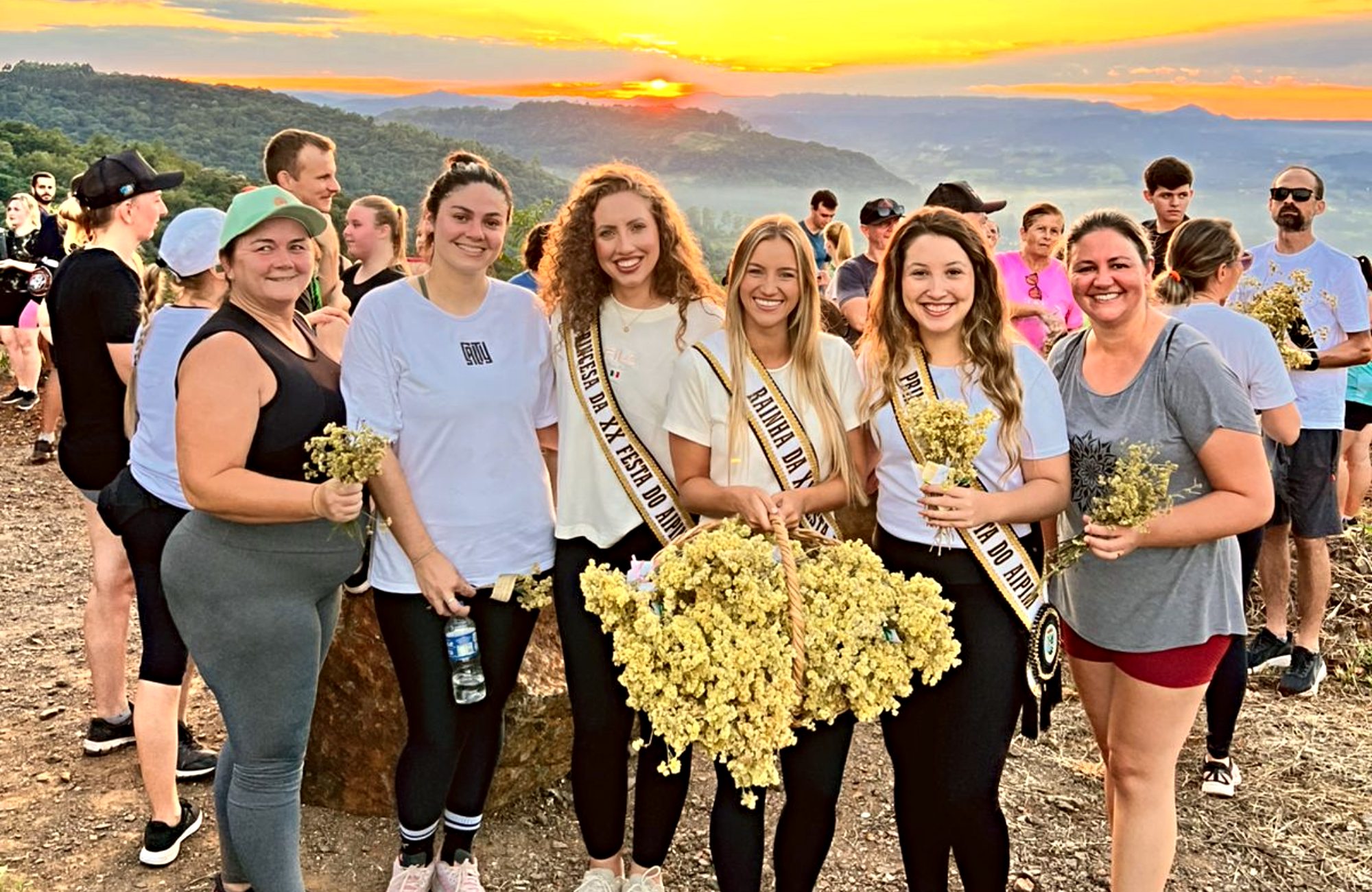 Um dos pontos do percurso foi o Morro do Cristo, onde os caminhantes tiveram vista do município. No local, os participantes foram recepcionados pela corte da 20ª Festa Municipal do Aipim, formada pela rainha Raquel Schafer e pelas princesas Júlia Follmer e Vitória Engeroff, que distribuíram feixes de macela.