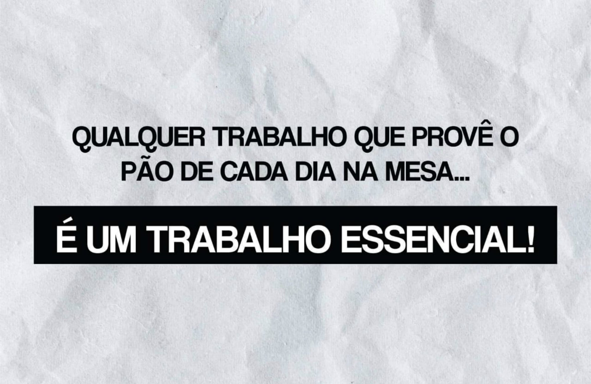 “O que se quer dizer é que qualquer trabalho que provê o pão de cada dia na mesa é um trabalho essencial, pois todos trabalham para manter a sua sobrevivência, da família, gerar empregos, provendo a vida de vários cidadãos”, completa.