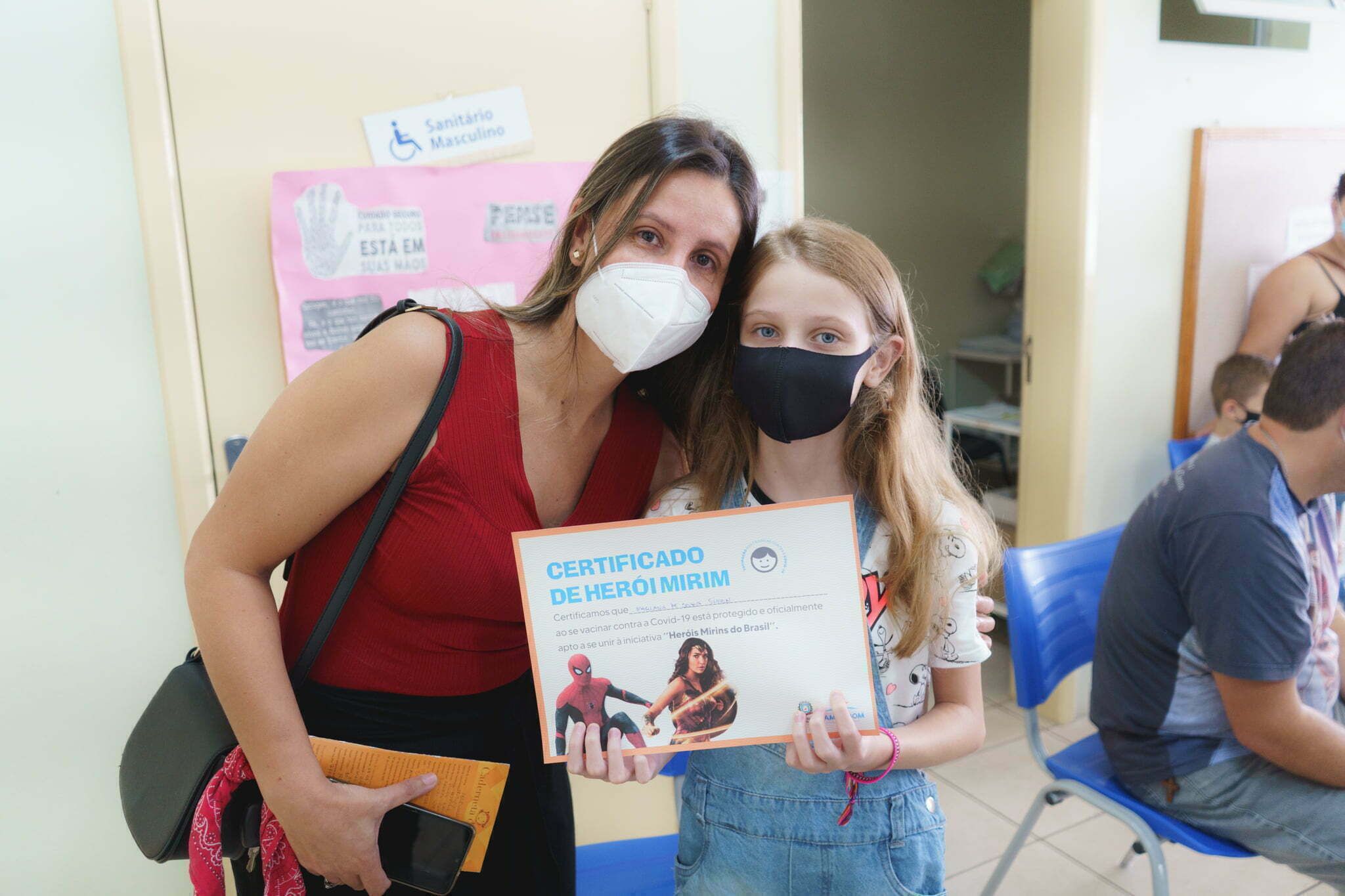 As crianças que se vacinara contra a Covid-19, em Campo Bom, tiveram uma surpresa: todas receberam um “Certificado de Herói Mirim”. A vacinação infantil teve início da manhã na quarta-feira, dia 19, para o grupo de 5 a 11 anos, com comorbidades; e segue ao longo da semana no Centro Materno Infantil (CMI).
