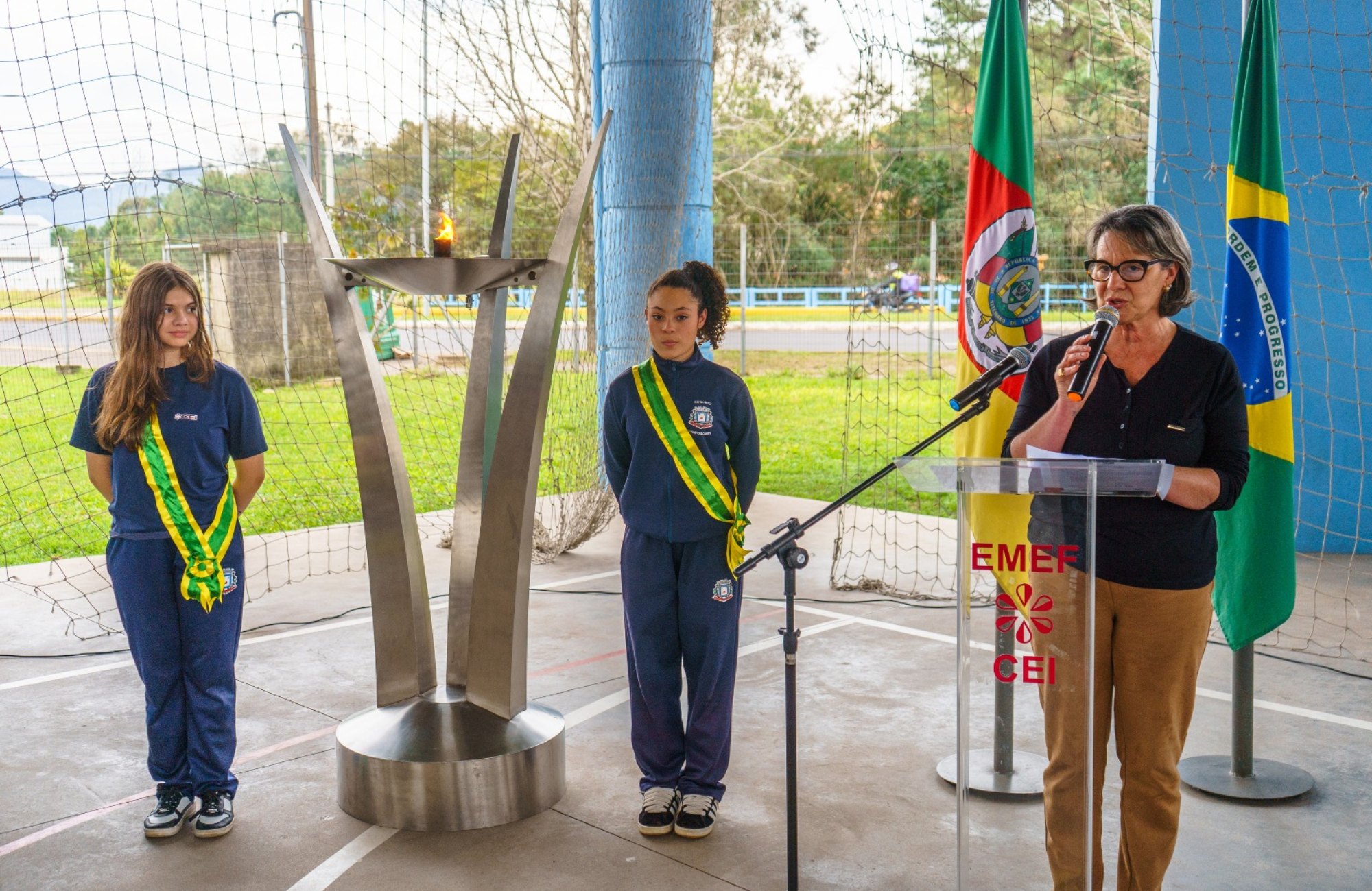 A secretária de Educação e Cultura, Mara Daubermann, destacou a relevância do momento. “O fogo simbólico é mais do que um ritual cívico: é a chama que mantém vivo o espírito patriótico, lembrando-nos de que a grandeza de uma nação está no exercício consciente da cidadania, no respeito às diferenças e na participação ativa da vida em comunidade”, afirmou.