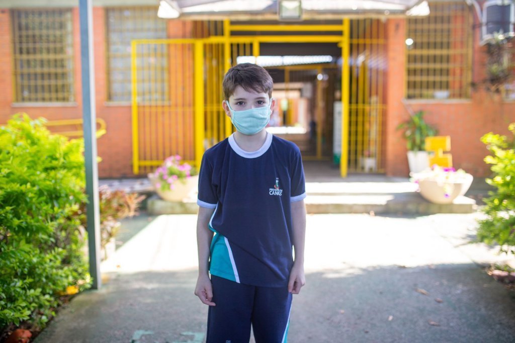 A mãe do Lucas, Neiva Teresinha Machado, o manteve em rotina escolar mesmo em casa, mas lembra que a sua vontade era voltar. “Nesse tempo em casa, ele estudava pela manhã, fazia tudo no mesmo horário da aula para não perder o ritmo. As dúvidas que ele tinha, eles faziam vídeo direto com ele para explicar. Durante a pandemia, pouco o tirei de casa. Não tenho problema em trazer ele para a escola, sei que a escola está bem equipada para isso, e as professoras cuidando. Meu único receio é que ele não gosta da máscara, ele fica mexendo na máscara, mas ele estava louco para voltar.