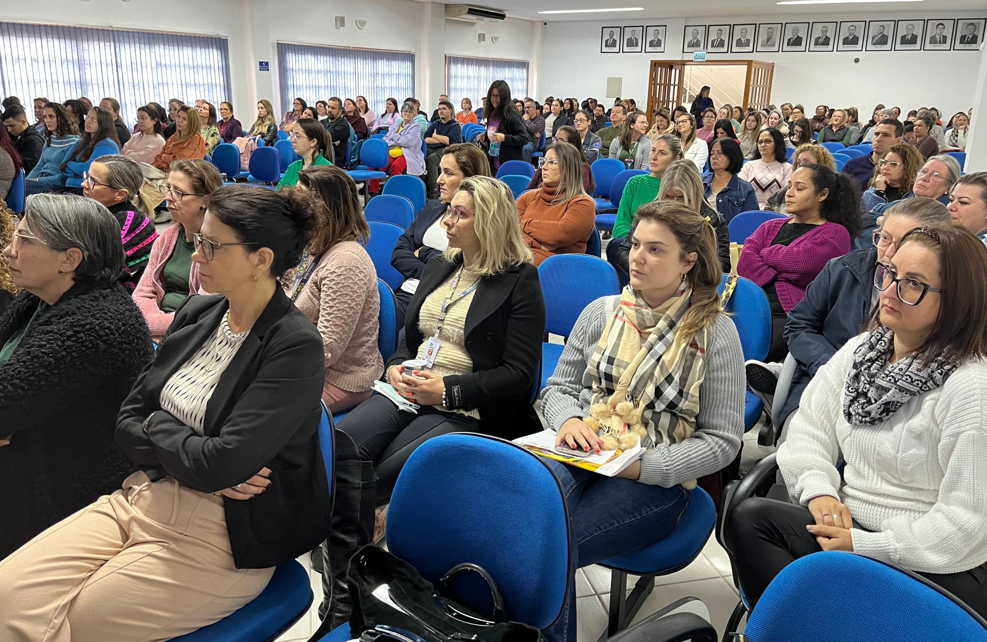 Na tarde desta terça-feira (8), cerca de 200 servidores da rede de saúde de Estância Velha, participaram do 2º turno interno de capacitação do Numesc (Núcleo Municipal de Educação em Saúde Coletiva). O tema do segundo encontro foi “Acolhimento e escuta sensível nos Serviços de Saúde”, e aconteceu na CDL (Câmara de Dirigentes Lojistas).