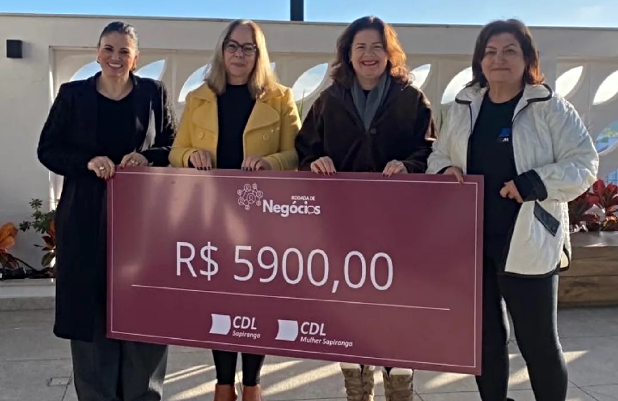 A Câmara de Dirigentes Lojistas de Sapiranga (CDL Sapiranga), por meio do núcleo CDL Mulher, entregou nesta quarta-feira (30) um cheque no valor de R$ 5.900 à Associação de Pais e Amigos dos Deficientes Auditivos de Sapiranga (Apada). O recurso foi arrecadado durante a Rodada de Negócios da entidade realizada em 17 de junho, voltada exclusivamente a mulheres empreendedoras associadas.