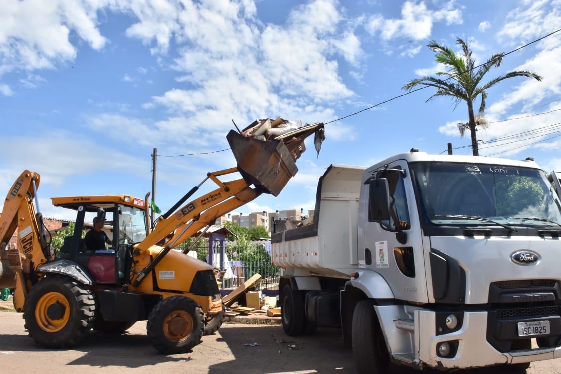 Apenas no bairro Canudos, foram retiradas em torno de 200 toneladas de resíduos, que estão sendo depositados no Ecoponto e serão transportados nesta terça-feira, 12, para o transbordo de Minas do Leão.