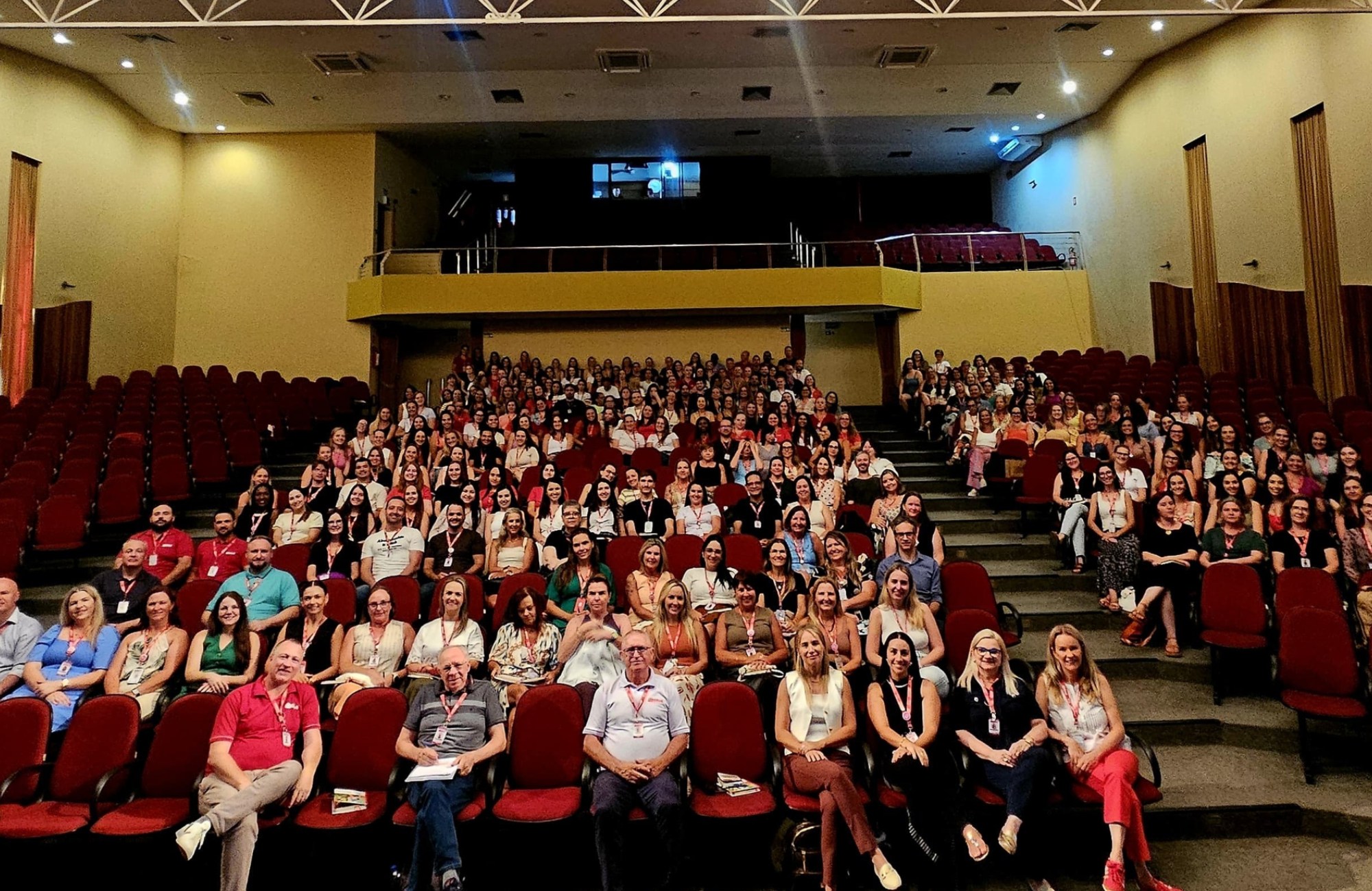 A abertura do seminário ocorreu na manhã desta quinta, 12, no Teatro Mauá, com recepção e abertura oficial das atividades. Na sequência, às 8h30, a psicóloga Fernanda Steffen Culau Bertazzoni ministrou a palestra “O lugar da escola e o exercício do autocuidado”, abordando temas relacionados à gestão do cuidado e ao bem-estar no contexto educacional. Após intervalo, a programação da manhã seguiu com a palestra “A escola através da história”, conduzida pelo professor Waldy Lau Filho, propondo uma reflexão sobre a escola a partir de uma perspectiva histórica e social.