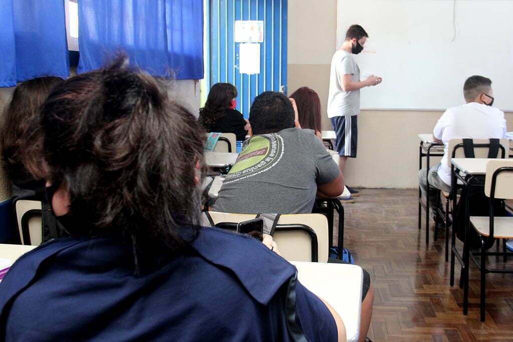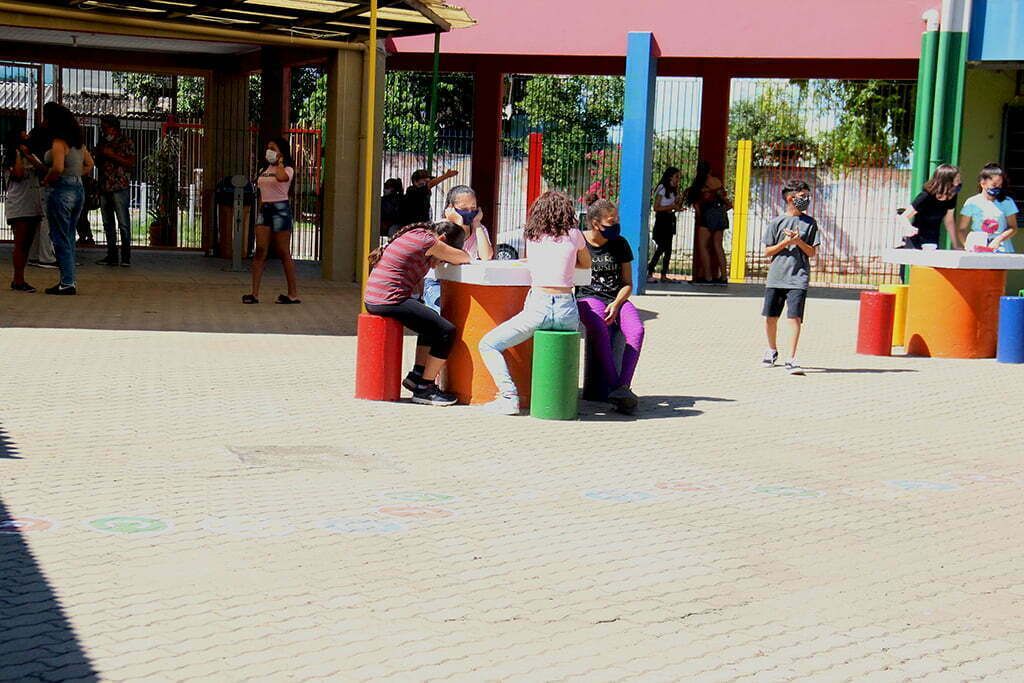 Mudou o ano, mas os cuidados com os alunos e com as equipes das instituições de ensino continuam, tanto em relação aos protocolos sanitários contra a covid-19 quanto à segurança. Na EMEB Eva Karnal Johann, no Bairro Liberdade, por exemplo, duas funcionárias recebiam os estudantes no portão, uma para averiguar a temperatura e a outra oferecendo álcool em gel para higienização das mãos. Ao mesmo tempo, a viatura da Ronda Escolar da Guarda Municipal acompanhava o movimento na parte externa da escola.